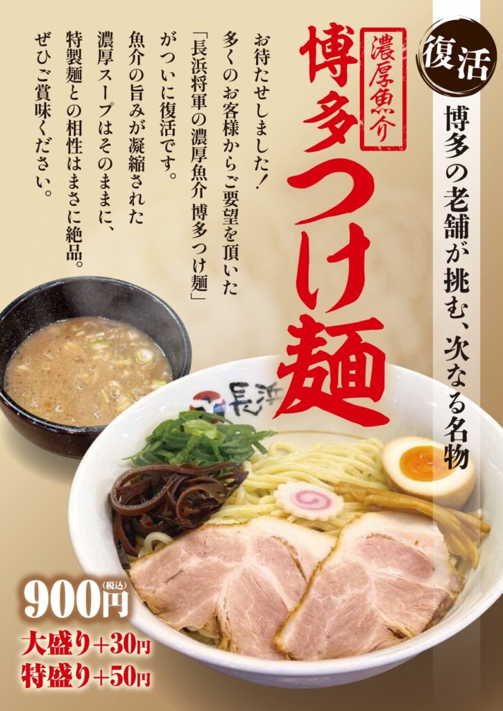長浜将軍の「濃厚魚介博多つけ麺」がこの冬、ついに復活!